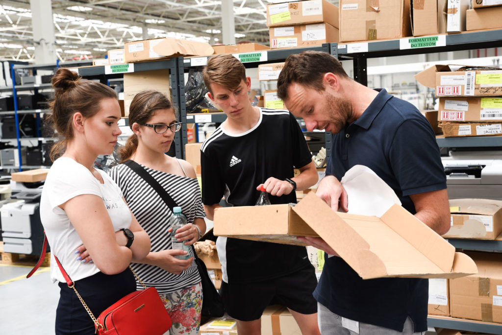 Podczas wizyty nasi młodzi goście przyglądali się pracy w poszczególnych działach, zwiedzili biura i magazyn. Hala magazynowa zrobiła wrażenie zwłaszcza na Danielu, który interesuje się logistyką niezbędną w tego typu obiektach.