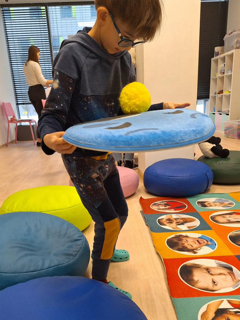 Każdego dnia czekały na naszych podopiecznych ciekawe zajęcia. W Sali Integracji sensorycznej uczestnicy sprawdzili swoją zdolność równowagi, ale także działanie zmysłów. Można było nie tylko huśtać się, przechodzić przez tor przeszkód, ale także wąchać, dotykać faktur i skakać na trampolinie. Na treningach kreatywności powstawały konstrukcje z klocków, tęczowe obrazki z kolorowych cukierków czy tekturowy samolot, którym wyruszyliśmy do świata emocji. A tam poznaliśmy nie tylko podstawowe emocje i sposoby radzenia sobie z nimi, ale także wspólnie stworzyliśmy krainę smutku, złości i szczęścia. Wykorzystując kolorową chustę Klanzy integrowaliśmy się i dodawaliśmy sobie energii w różnych zabawach. Był też czas na wzmacnianie koncentracji uwagi z pomocą zagadek logicznych. Graliśmy w piłkę nożną oraz sprawdziliśmy swoje umiejętności taneczne w czasie trwania dyskoteki. „Program półkolonii skoncentrowany był na holistycznym rozwoju dzieci, z uwzględnieniem ich zróżnicowanych potrzeb. Zapewniliśmy dzieciom bogatą ofertę różnorodnych aktywności, uwzględniając również czas na odpoczynek i wyciszenie. Ważnym elementem programu było budowanie relacji interpersonalnych, co stanowiło fundament terapeutycznego oddziaływania.” – wyjaśnia Agnieszka Uberoi, menadżerka HKF Centrum.